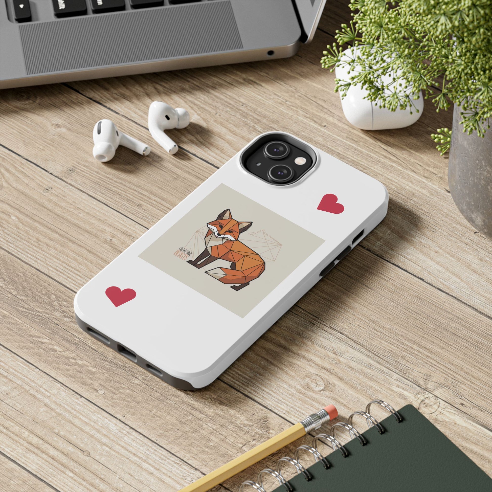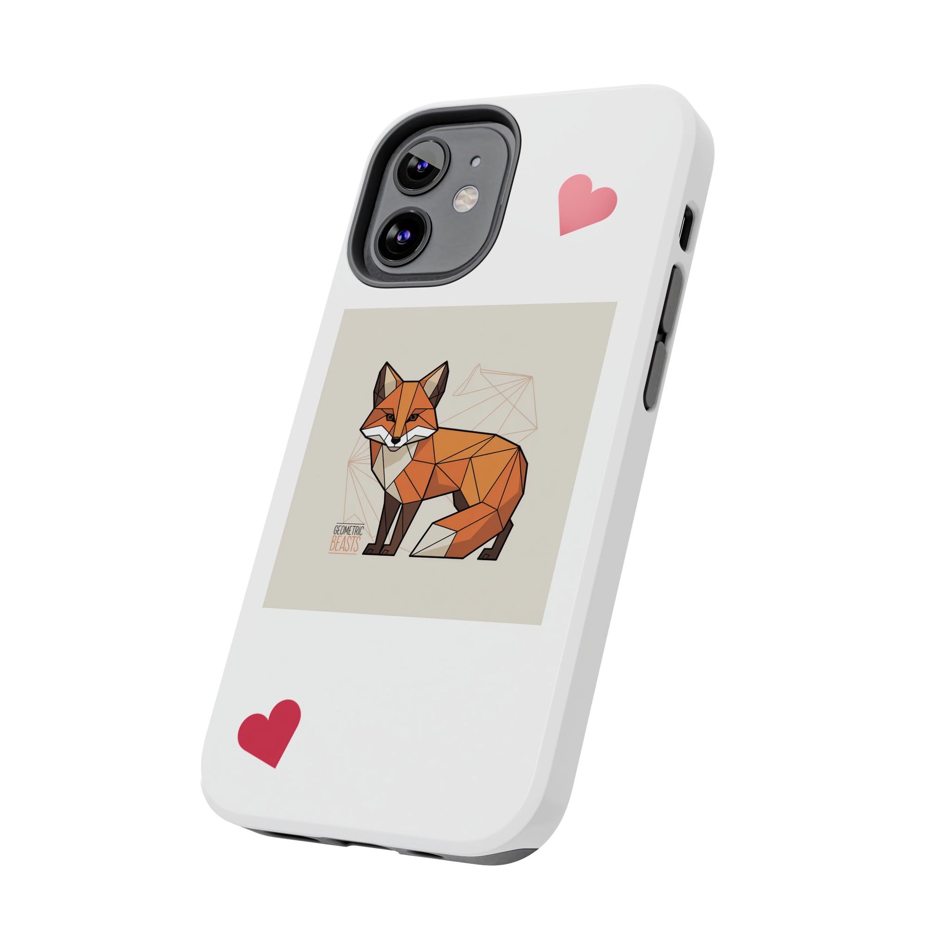 Protect your phone in style with this durable Tough Phone Case. Designed to offer reliable protection while showcasing a charming geometric fox design accented with playful hearts, this case adds personality to your device. Perfect for those who love unique and artistic accessories, it creates an atmosphere of creativity and warmth. Ideal for everyday use, it suits anyone searching for a blend of fun and functionality. Great for gifting on occasions like birthdays, holidays, or as a thoughtful present for animal lovers.